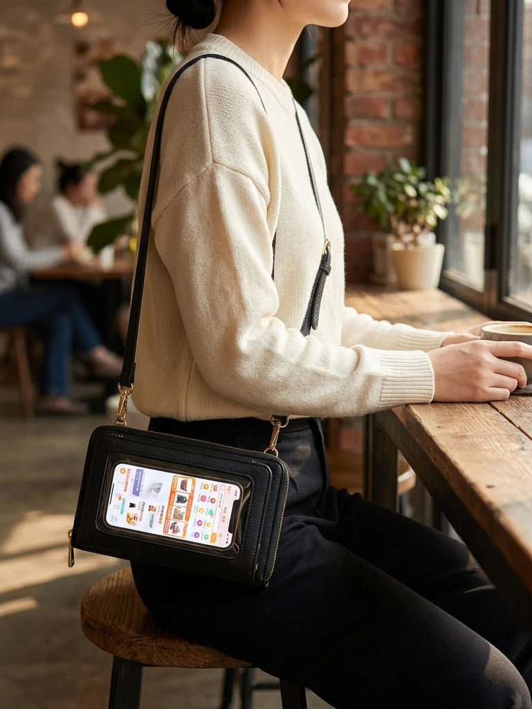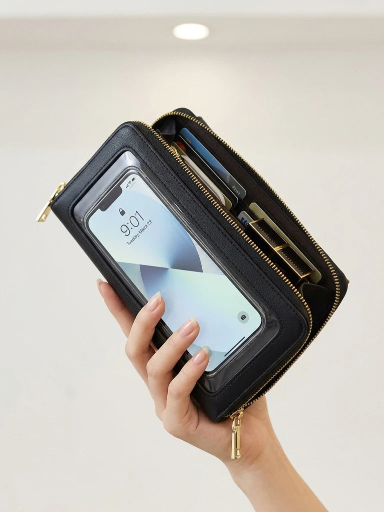 Oui, le compartiment tactile transparent est conçu pour accueillir la majorité des smartphones modernes, vous permettant d'utiliser votre écran sans retirer votre appareil. C'est l'alliance parfaite de la praticité et de l'élégance pour votre quotidien connecté.